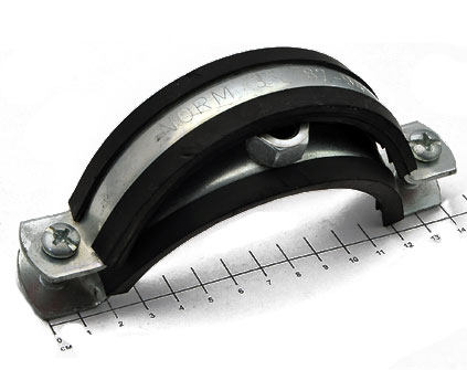 Demir we plastika turbalary üçin homutlar diwarlarda ýa-da potoklarda turbany berkitmek üçin ullanylýar. Diametri 87 mm. Materialy demir