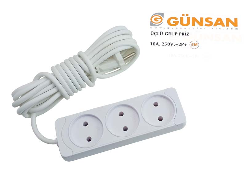 Udlinitel Günsan 3 gözli 5metr ýonekeý