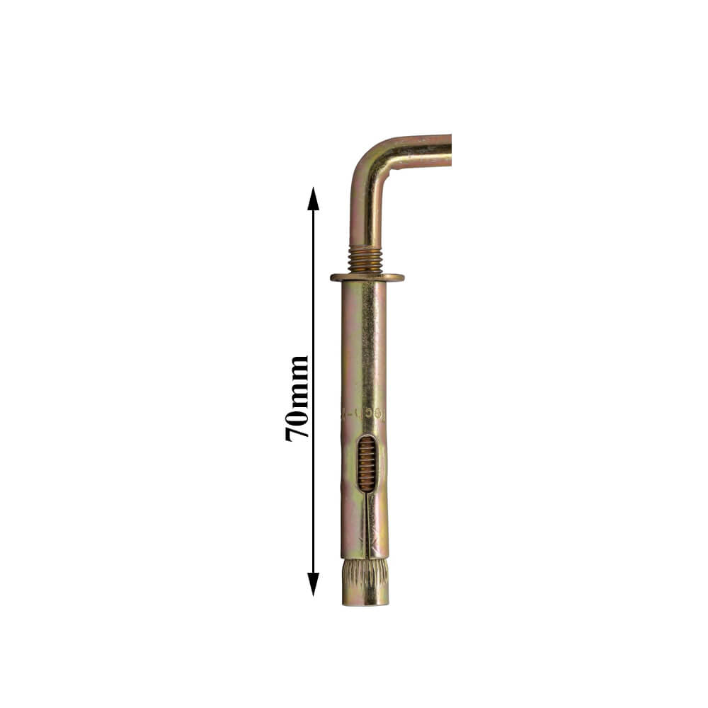 Anker bolt boýler üçin.Gaýka diametri (D1) M10. Swerlo diametri (D): 10mm. Ankeryň uzynlygy (L): 70mm. Ankeryň materialy: Polat. Örtük: Sink.