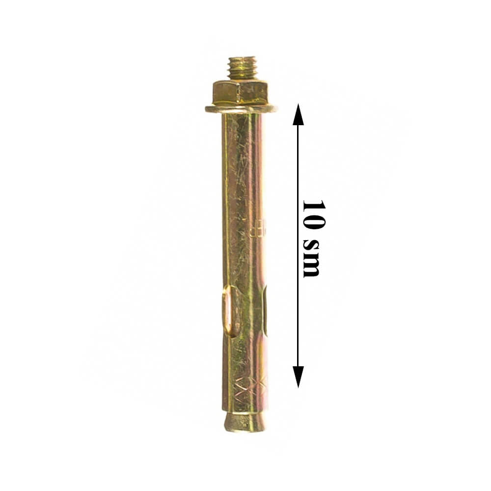 Anker bolt.Gaýka diametri (D1) M10. Ankeryň diametri (D): 10mm. Ankeryň uzynlygy (L): 100mm. Ankeryň materialy: Polat. Örtük: Sink.