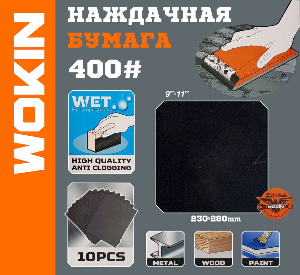 Технические характиристики: Наждачная бумуга черная , 400 WOKIN 324012